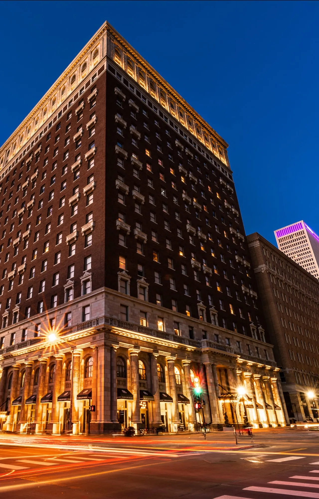 A restored 1920s landmark in downtown Tulsa, was once the tallest building in Oklahoma and a hub for the city’s oil-boom elite. After a full renovation, it now blends original architectural character with modern amenities, boasting a sweeping rooftop view of the skyline.