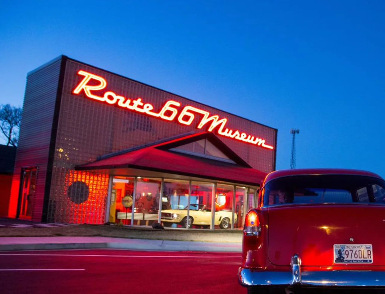 Historic landmarks, neon signs, and classic Americana.